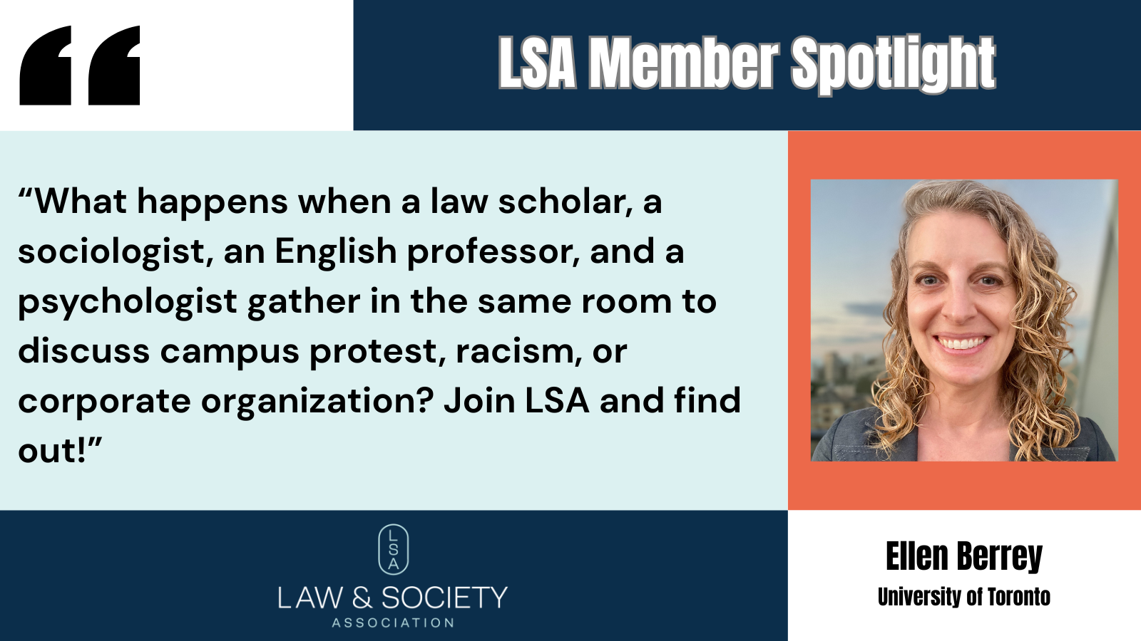 The cross-disciplinary intellectual community of LSA keeps me coming back every year. The scholars I have met through LSA are among the smartest, most generous people I know. Being part of the LSA community sharpens my research on law, making it more precise, insightful, and impactful.