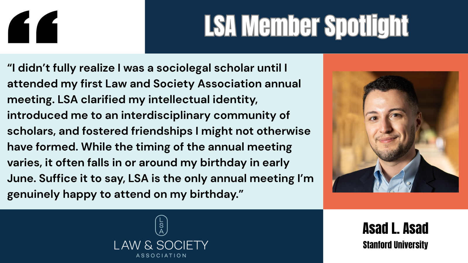 I didn’t fully realize I was a sociolegal scholar until I attended my first Law and Society Association annual meeting. LSA clarified my intellectual identity, introduced me to an interdisciplinary community of scholars, and fostered friendships I might not otherwise have formed. While the timing of the annual meeting varies, it often falls in or around my birthday in early June. Suffice it to say, LSA is the only annual meeting I’m genuinely happy to attend on my birthday.